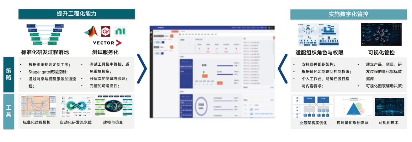 同时结合ASPICE汽车制造业软件过程改进及能力评定模型,打造符合汽车制造行业标准的软件项目管理过程,实现研发全过程的双向可追溯,提升制造型企业工程化能力,为全面实现数字化管控提供产品支撑。